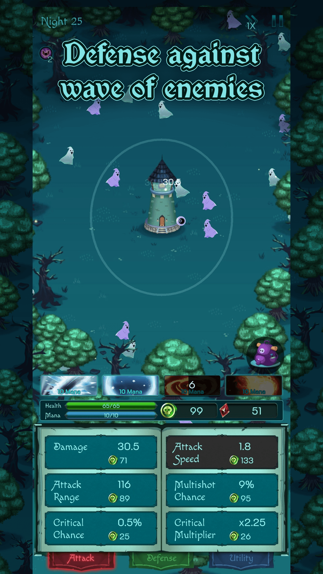 Step into the shoes of a young witch and protect your tower from waves of relentless enemies! Harness the power of spells, potions, and strategic tower upgrades to survive countless nights of battle. Face diverse enemies with unique mechanics, master magical defenses, and prove your skills in this idle tower defense adventure!